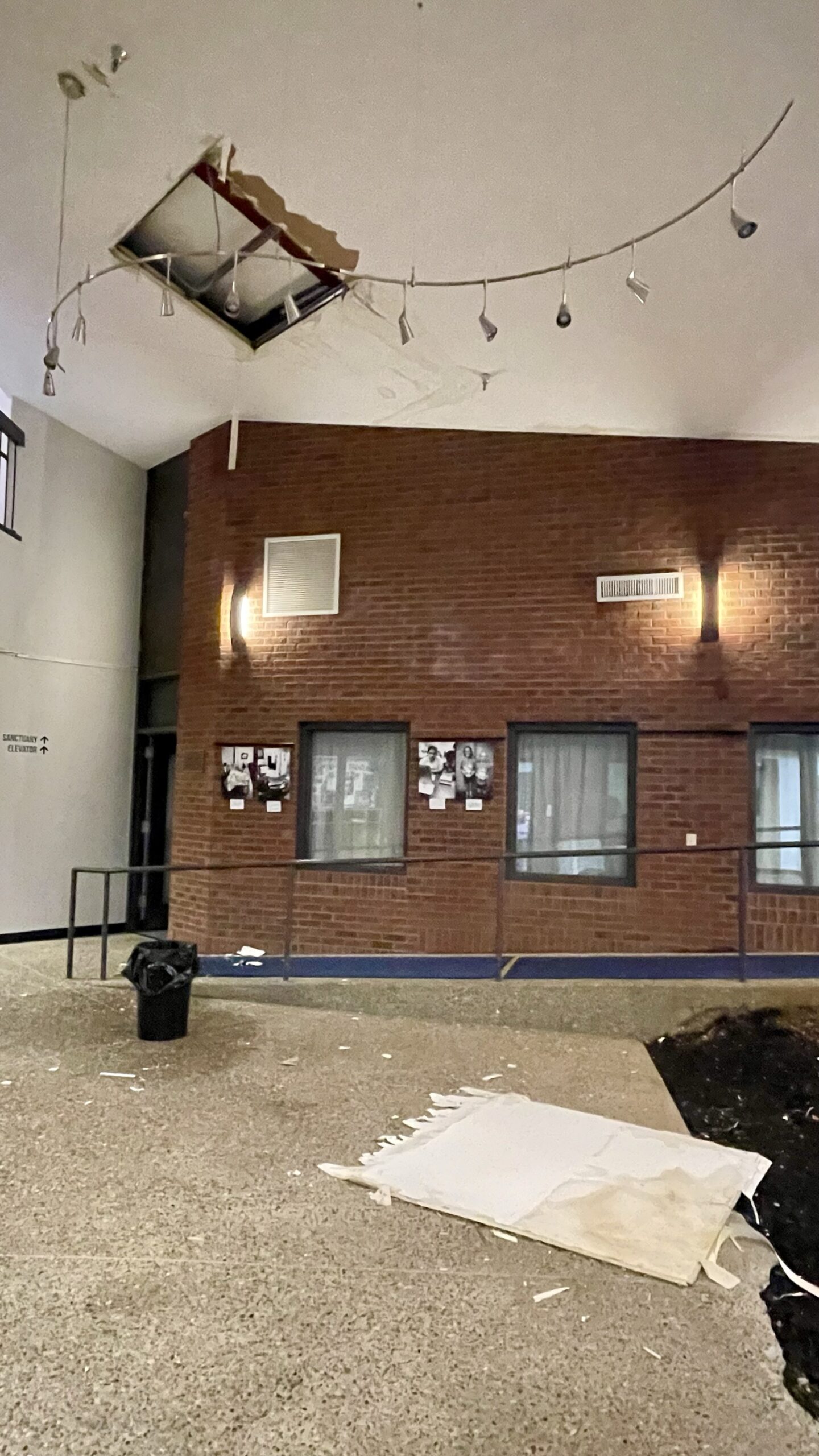 That all changed when one Sunday Amanda walked into the atrium and part of the ceiling was on the floor.